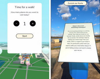 Before you begin, set a personal goal: how many locations would you like to visit today? As you walk, the AR experience guides you to real-world spots nearby. At each location, you’re invited to pause and take a mindful break.